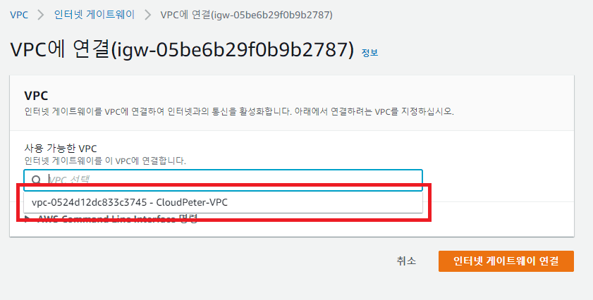 - 이름 태그: CloudPeter-IGW