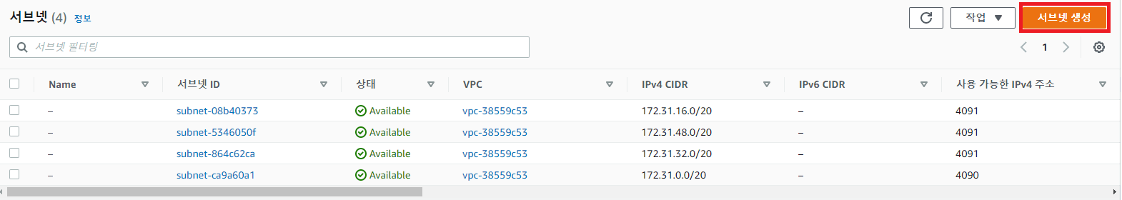 - VPC Console 접속 -> 서브넷