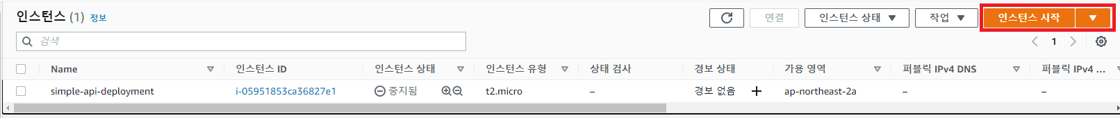 인스턴스 시작 클릭