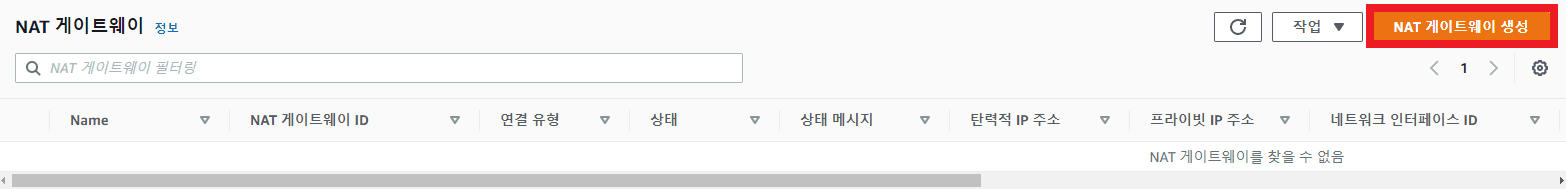 VPC Console 접속 -> NAT 게이트웨이