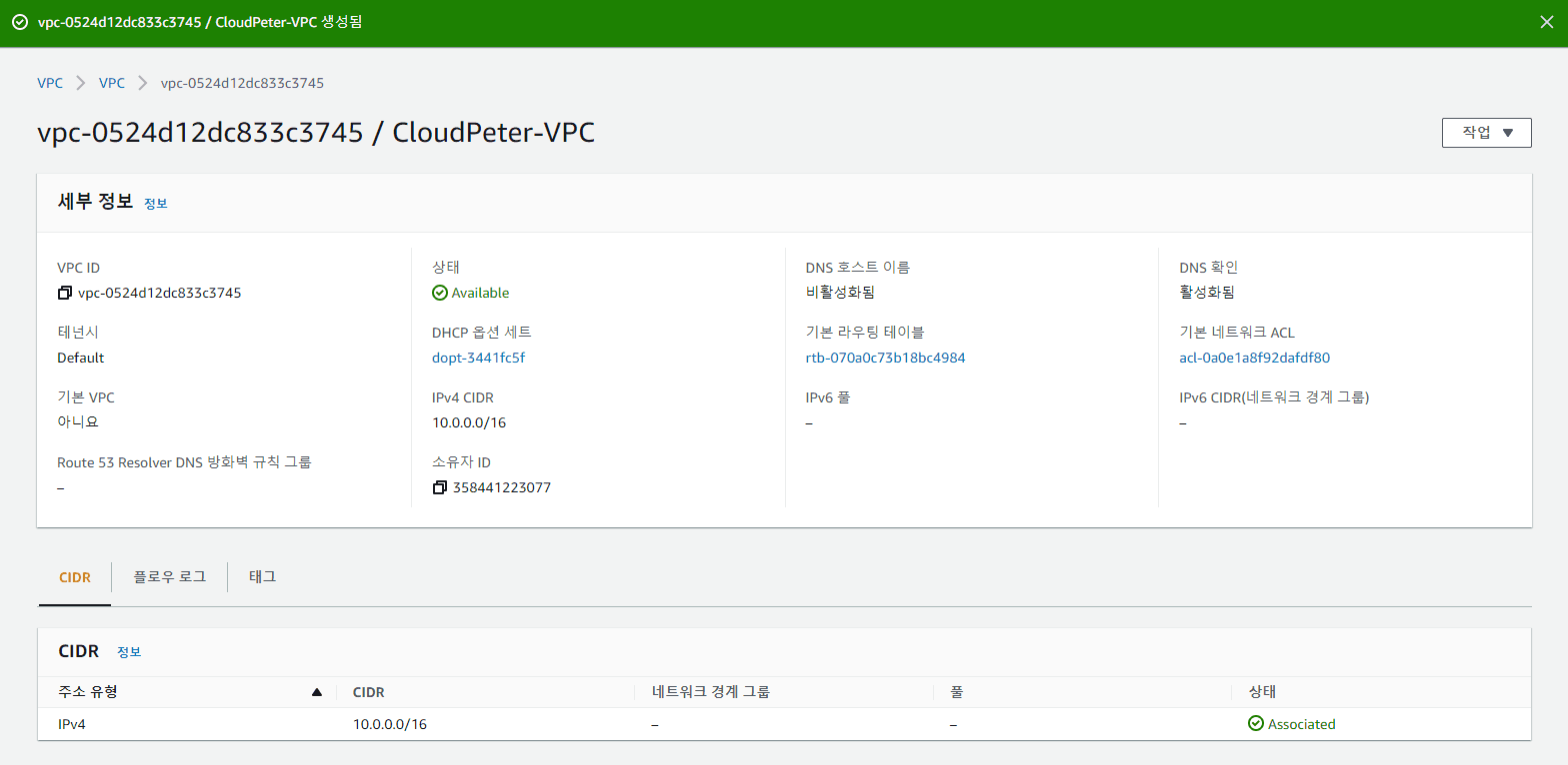 - 이름: CloudPeter-VPC